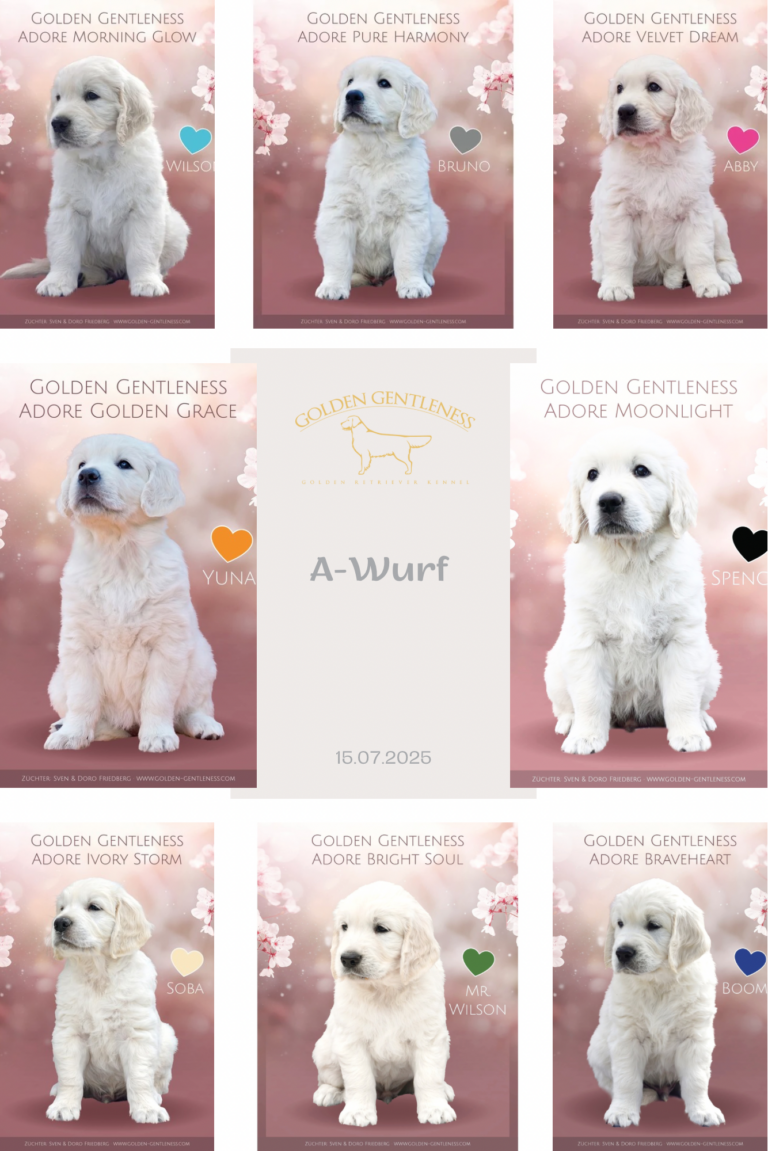 Mit ganz viel Freude dürfen wir euch unseren allerersten Wurf vorstellen. Unsere kleinen Goldis sind inzwischen am Ende der 5. Woche und haben sich zu neugierigen, verspielten und verschmusten Fellnasen entwickelt. Jeder Tag bring neue Abenteuer: ob beim Erkunden des Garten, beim Spielen mit den Geschwistern oder beim Kuscheln mit uns.